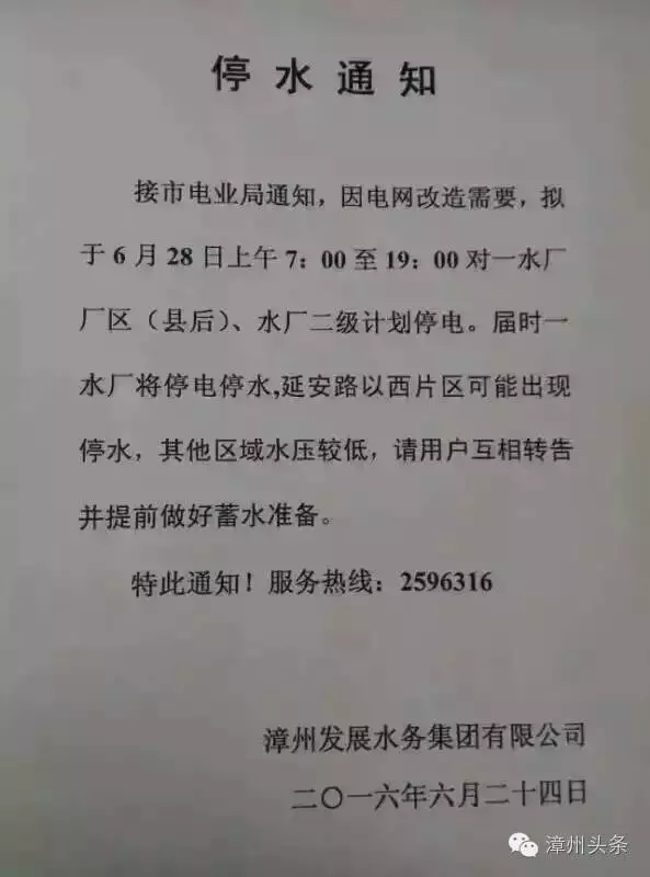 28日漳州延安路以西片區可能要停水!7月2-4日將對下列線(xiàn)路范圍停電!