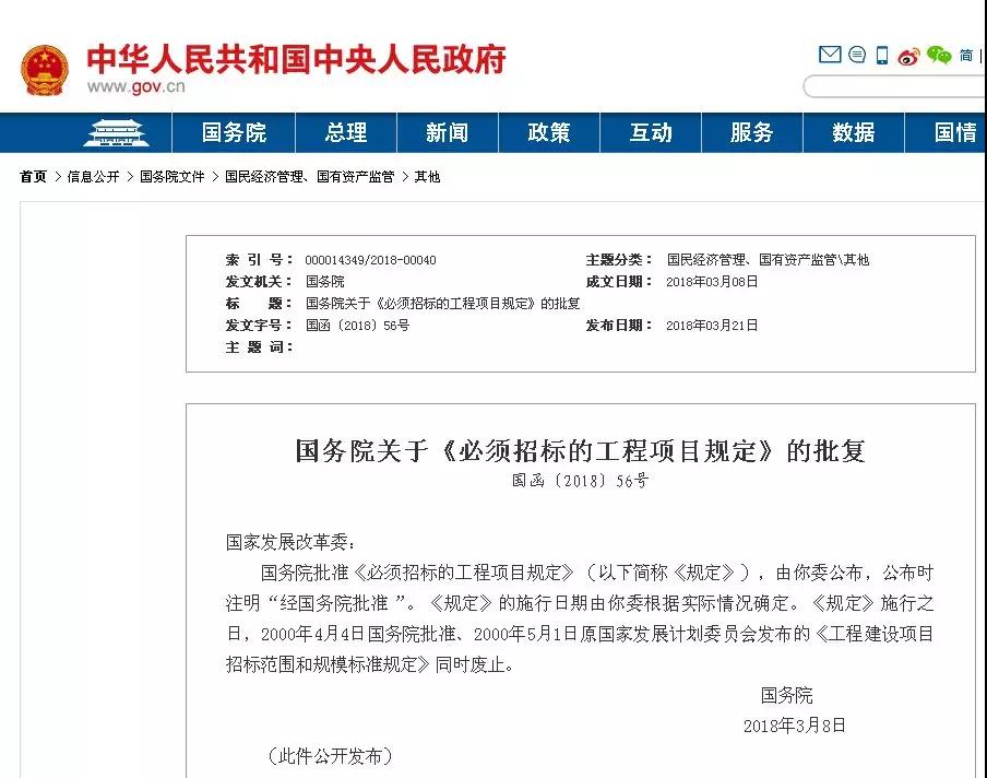 第四條 不屬于本規定第二條、第三條規定情形的大型基礎設施、公用事業(yè)等關(guān)系社會(huì )公共利益、公眾安全的項目,必須招標的具體范圍由國務(wù)院發(fā)展改革部門(mén)會(huì )同國務(wù)院有關(guān)部門(mén)按照確有必要、嚴格限定的原則制訂,報國務(wù)院批準。
