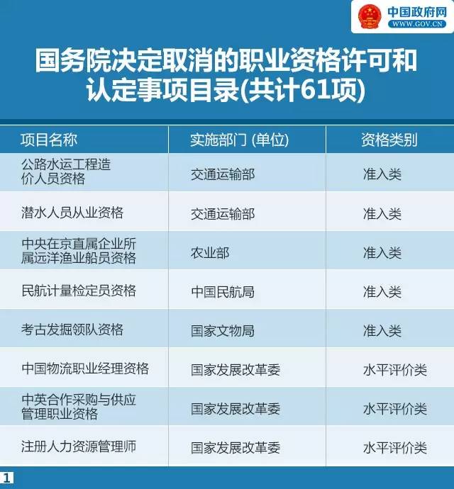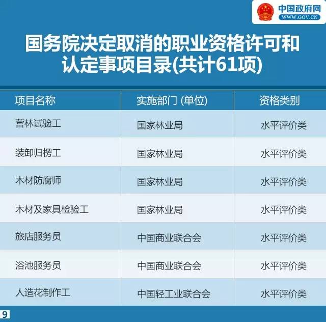 國務(wù)院決定取消的職業(yè)資格許可和認定事項目錄