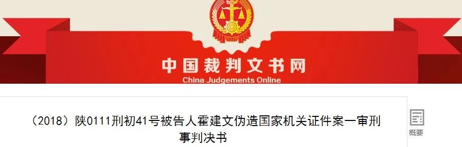 被告人霍建文犯偽造國家機關(guān)證件罪,判處有期徒刑六個(gè)月,并處罰金200000元。(刑期自判決執行之日起計算。判決執行以前先行羈押的,羈押一日折抵刑期一日,即自2017年11月1日起至2018年4月30日止。罰金已繳納。)